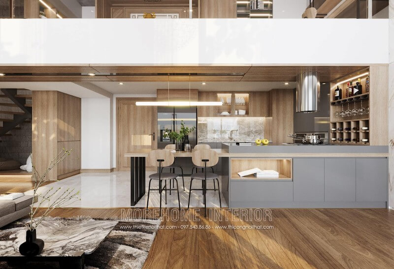 Thiết kế nội thất phòng bếp đẹp là nơi giữ lửa hạnh phúc, cùng nhau quây quần bên bữa cơm ngon của gia đình. Sắp xếp nội thất phòng bếp một cách khoa học, đảm bảo đầy đủ công năng sẽ làm không gian nấu nướng của bạn rộng rãi, hứng thú hơn với công việc nội trợ. Vì vậy, khi thiết kế nội thất phòng bếp đẹp cần hiểu rõ được cách sắp xếp nội thất để cảm thấy tiện nghi nhất. Hãy cùng xem qua các mẫu Thiết kế nội thất phòng bếp đẹp của MoreHome thực hiện để sở hữu một phòng bếp ấn tượng cho không gian ngôi nhà nhé