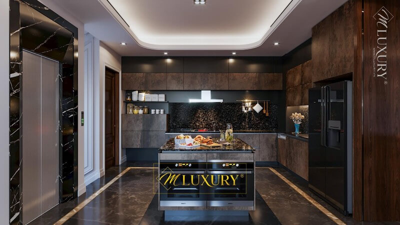 Thiết kế nội thất phòng bếp biệt thự sang trọng và cao cấp phong cách tân cổ điển