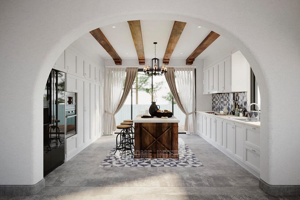 Không gian phòng bếp được thiết kế với đầy đủ những nôi thất tiện nghi giúp không gian căn bếp trở nên đẹp sang trọng và ấn tượng hơn trong mắt người nhìn