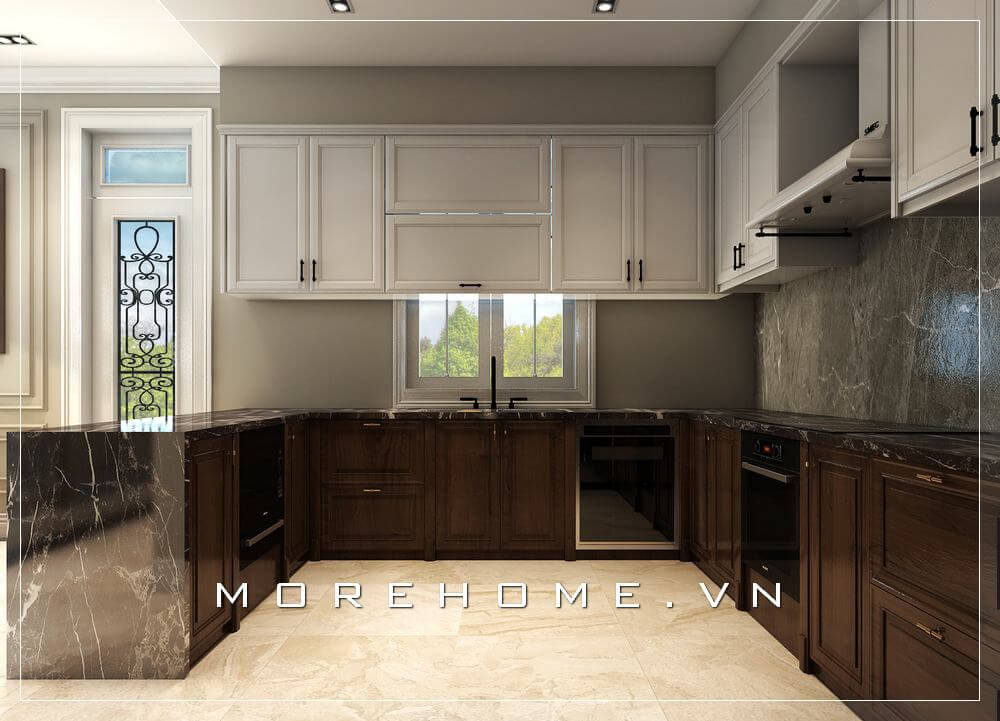 Morehome thiết kế phòng bếp đẹp hiện đại cho biệt thự bằng chất liệu gỗ tự nhiên nhập khẩu chất lượng