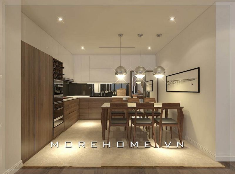 Thiết kế nội thất phòng bếp chung cư hiện đại đa năng
