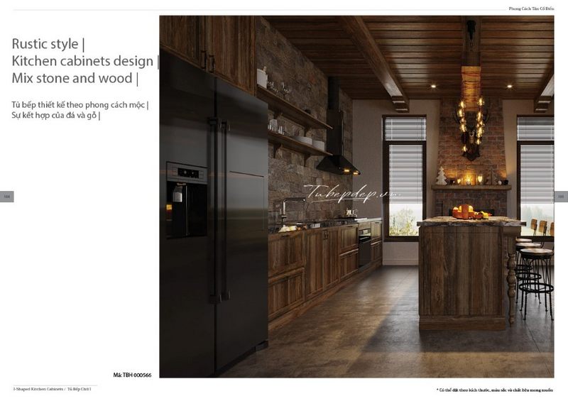 Thiết kế nội thất phòng bếp biệt thự gỗ tự nhiên phong cách tân cổ điển sang trọng tạo cảm giác ấm cúng và thoải mái cho gia chủ