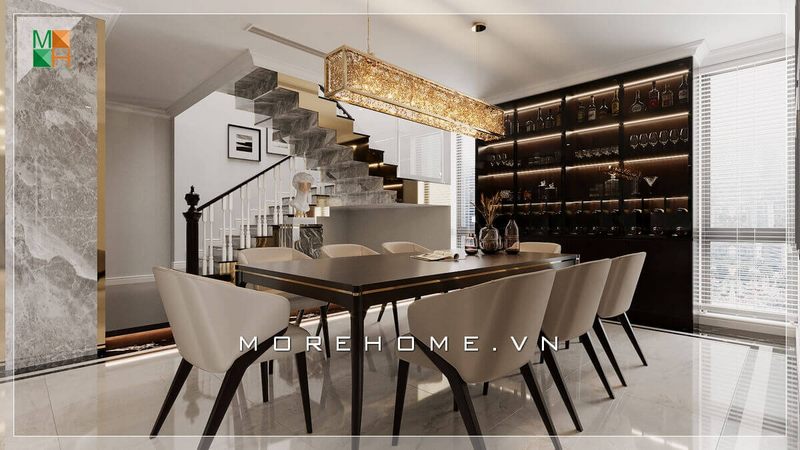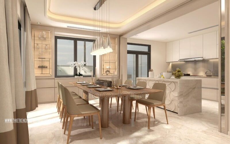 Ngắm nhìn mẫu thiết kế nội thất phòng ăn biệt thự, nhà phố tiện nghi mang phong cách hiện đại.