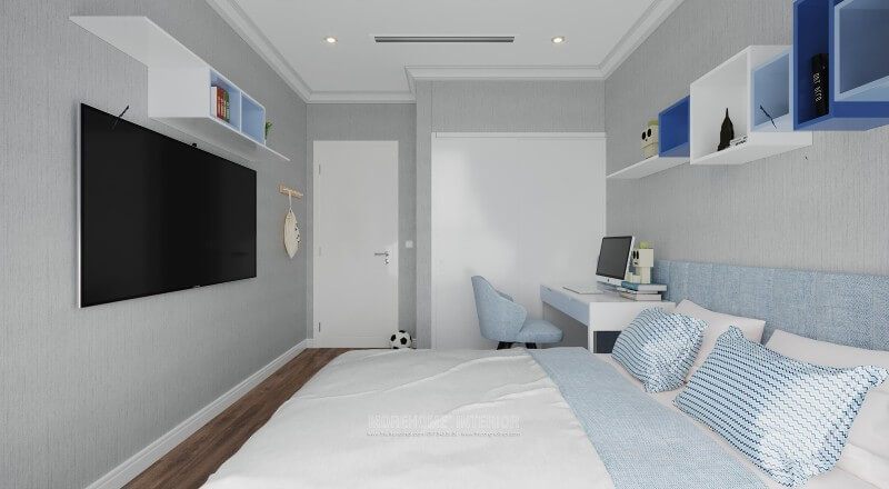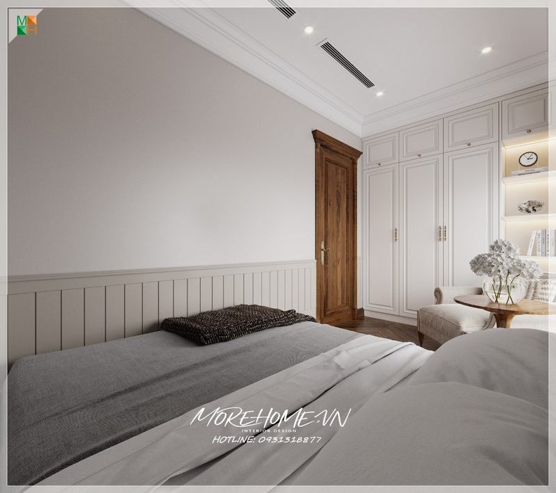 . Chọn cửa gỗ trắng nhẹ nhàng để tạo cảm giác liền mạch, đồng bộ và không bị rối mắt với nội thất khác trong phòng.