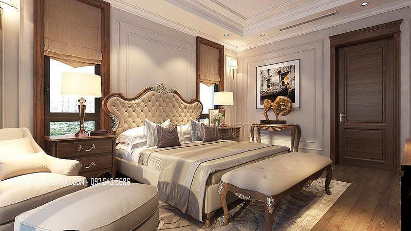 Giường ngủ gỗ óc chó được thiết kế theo phong cách tân cổ điển sẽ góp phần tạo nên sự sang trọng và ấm áp cho không gian nghỉ ngơi của mỗi gia đình.