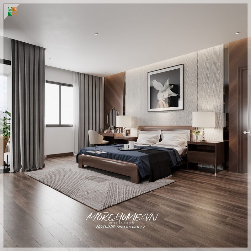Mẫu thiết kế phòng ngủ dành cho các căn hộ, nhà phố, biệt thự có nội thất gỗ tự nhiên cao cấp theo phong cách hiện đại.