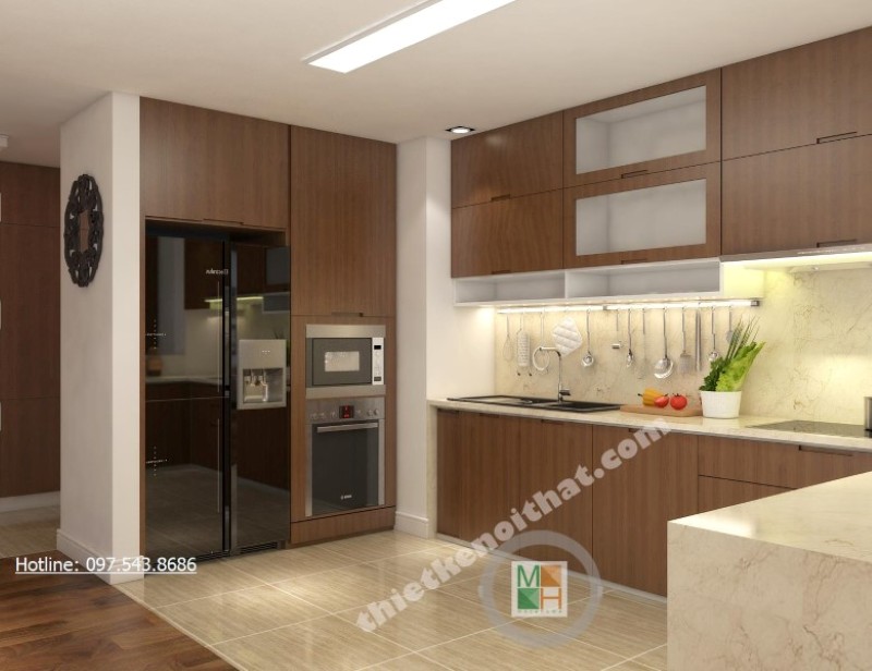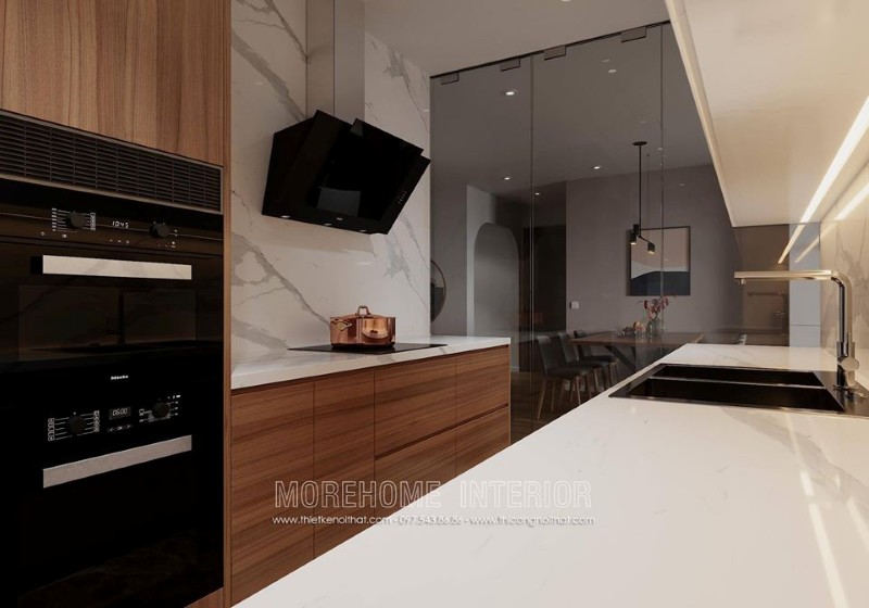 Bố trí nội thất phòng bếp tiện nghi, sang trọng