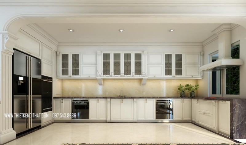 Thiết kế nội thất phòng bếp cao cấp phong cách tân cổ điển.